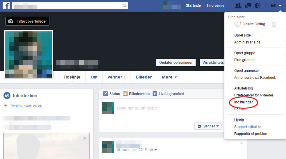 Log dig på Facebook med de relevante adgangsdata. Klik på den lille trekant øverst til højre. Du skal nu vælge punktet „Indstillinger“ i menuen.